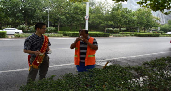 一、高溫送清涼,義務(wù)送水活動。近日,持續(xù)的高溫席卷鄭州。即使是這樣的高溫天氣,環(huán)衛(wèi)工人仍頭頂烈日,堅守在高溫一線,確保轄區(qū)內(nèi)整潔有序、干凈衛(wèi)生。7月14日上午,市建投公司黨員志愿者自備祛暑茶水,帶著水壺、水杯,慰問了酷暑中仍然堅守在一線的鄭東新區(qū)環(huán)衛(wèi)工人,為他們送上了夏季“解渴水”,感謝高溫下堅守崗位的他們?yōu)榄h(huán)衛(wèi)工作所付出的辛苦和汗水,并叮囑大家一定要加強防暑措施,注意安全。此次活動,不僅在這個夏天為一線環(huán)衛(wèi)人員送來了清涼,更彰顯了來自企業(yè)的愛心和責(zé)任。
